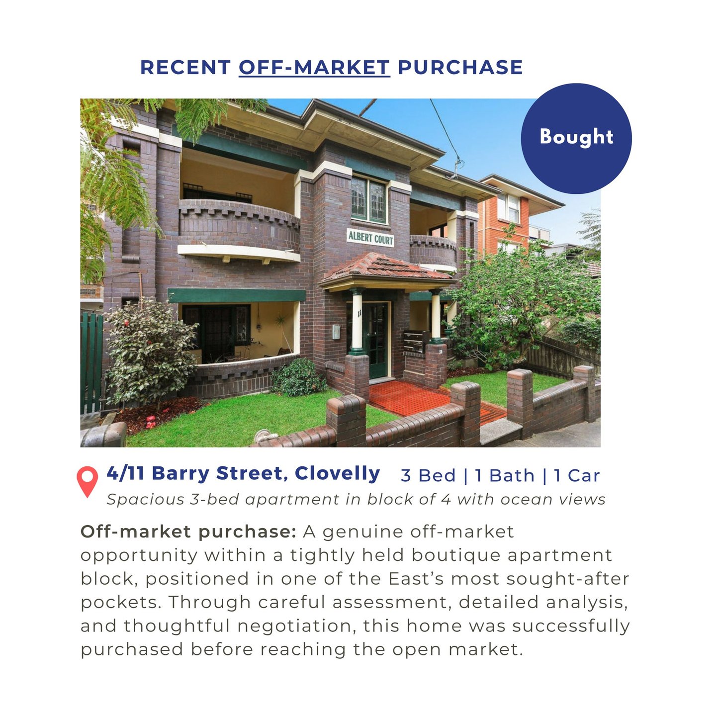 Recent off-market purchase: 4/10 Barry Street, Clovelly